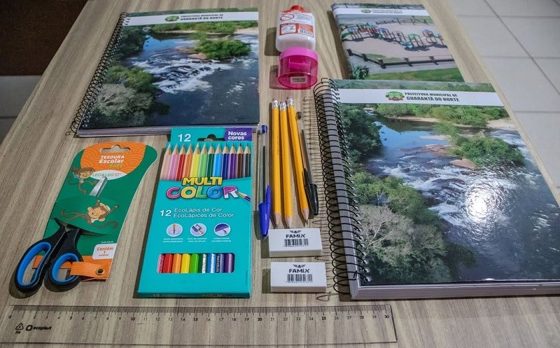 Os kits escolares foram preparados com materiais de qualidade e personalizados com imagens turísticas do município, enquanto os cadernos trazem a letra do hino municipal, valorizando a cultura local e fortalecendo o sentimento de pertencimento dos estudantes. Entre os itens distribuídos estão lápis preto, borrachas, apontador, canetas, lápis de cor, cola, cadernos, tesoura e régua, garantindo o suporte necessário para o início do ano letivo.