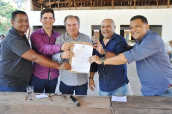 Durante a solenidade de entrega de 84 Títulos Definitivos de Domínio feita pela Prefeitura Municipal de Matupá e a Superintendência Regional do INCRA/MT para assentados do PA São José União no Retiro dos Padres na Linha 03. O Superintendente João Bosco de Moraes anunciou e fez a entrega da autorização do INCRA para que o Prefeito Valtinho Miotto faça lance edital licitatório para investimentos da ordem de R$ 2 milhões em obras de infraestrutura nas estradas rurais da Gleba Padovani.