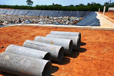 O Aterro Sanitário não é um simples depósito de lixo. É um local preparado para receber e dar tratamento final aos resíduos sólidos urbanos (lixo) no solo. O lixo é depositado em células, ou seja, método de disposição em camadas, que busca proteger o Meio Ambiente e a Saúde Pública.