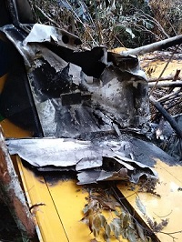 “Estava gradeando com um trator uma área quando o avião passou sobrevoando bem baixo e caiu. Com outros dois funcionários fomos até o local e encontramos o avião todo destruindo pegando fogo. Andamos pelo local, mas não encontramos o piloto”, disse.